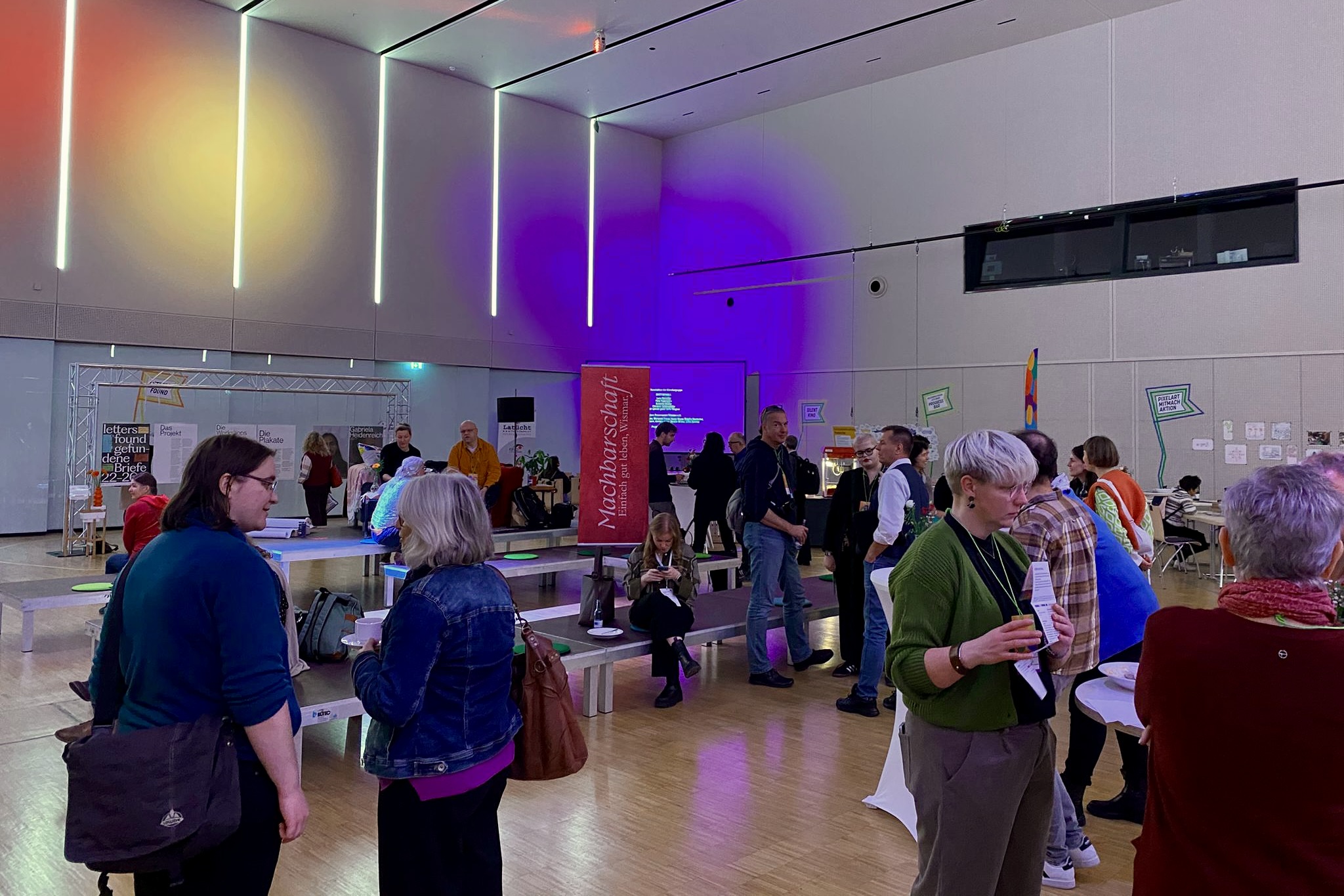 In einer „Markthalle" im Haus der Kultur und Bildung wurden Mitmachangebote präsentiert, die den Blick auf die kulturellen Möglichkeiten weiten sollten. Zu erleben waren: „Sprach-Oper", „Silent-Kino" oder auch praktisches Arbeiten mit Pixel-Drucktechniken.
