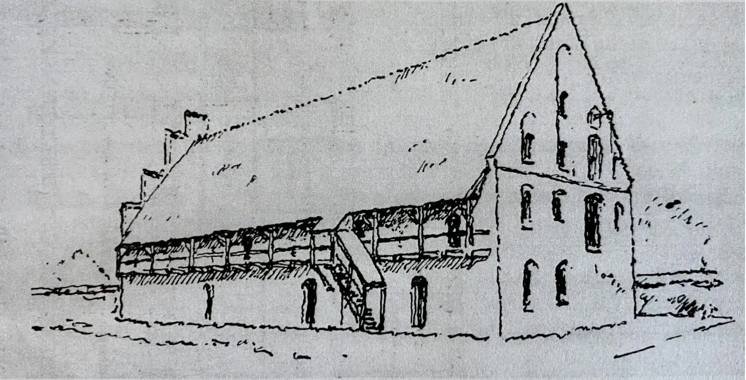 Die Wollscheune blickt auf eine lange Geschichte zurück. Über ihre Nutzung gibt es unterschiedliche Versionen. Fest steht, dass das Dach des zweigeschossigen Gebäudes um 1850 infolge eines Sturms eingestürzt ist und das Gebäude danach nicht mehr genutzt werden konnte. In der Folgezeit wurde massiver Raubbau betrieben, sodass 1920 nur noch die Außenwände standen.
