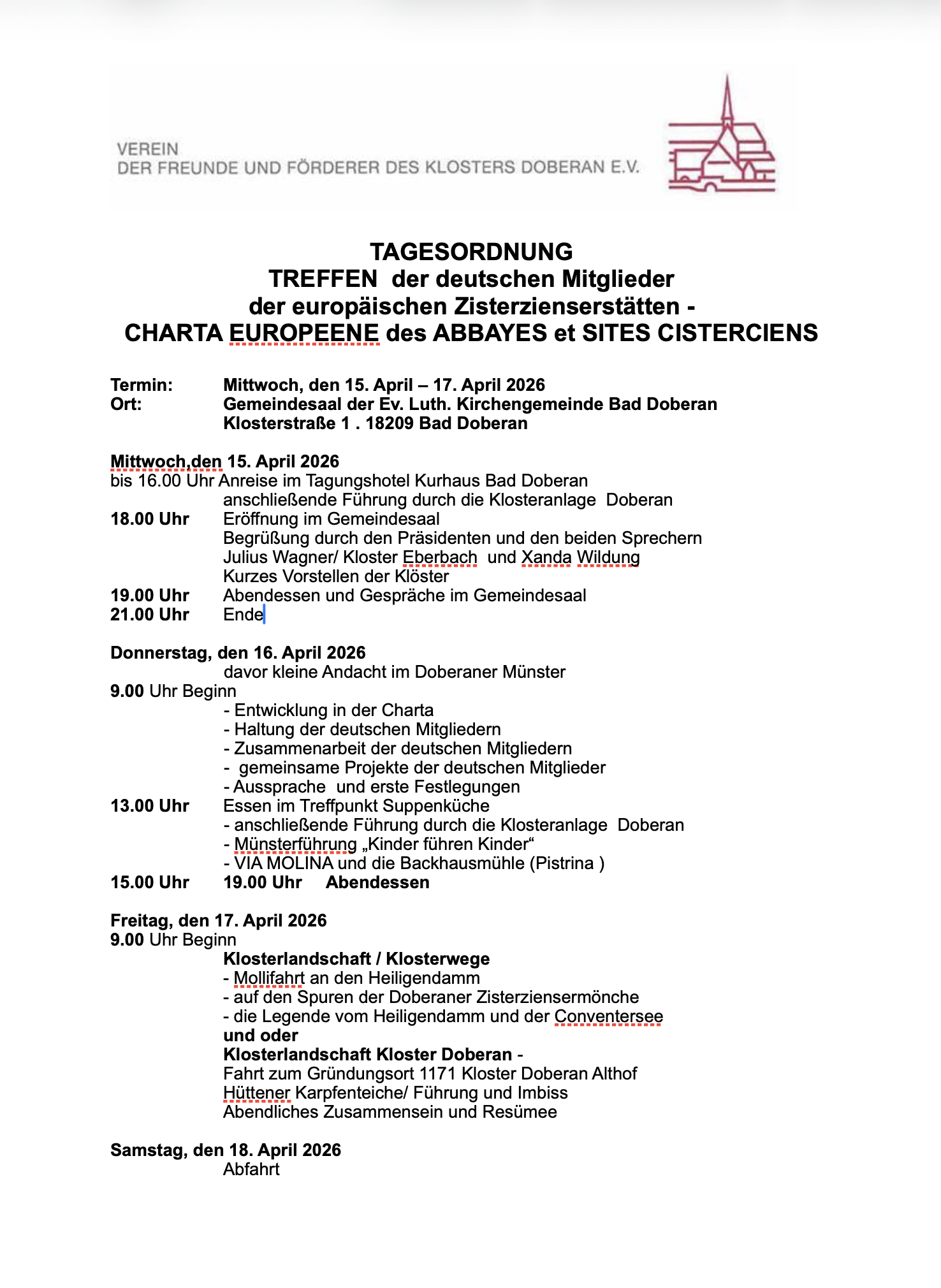Liebe Freunde des Klostervereins Doberan,
