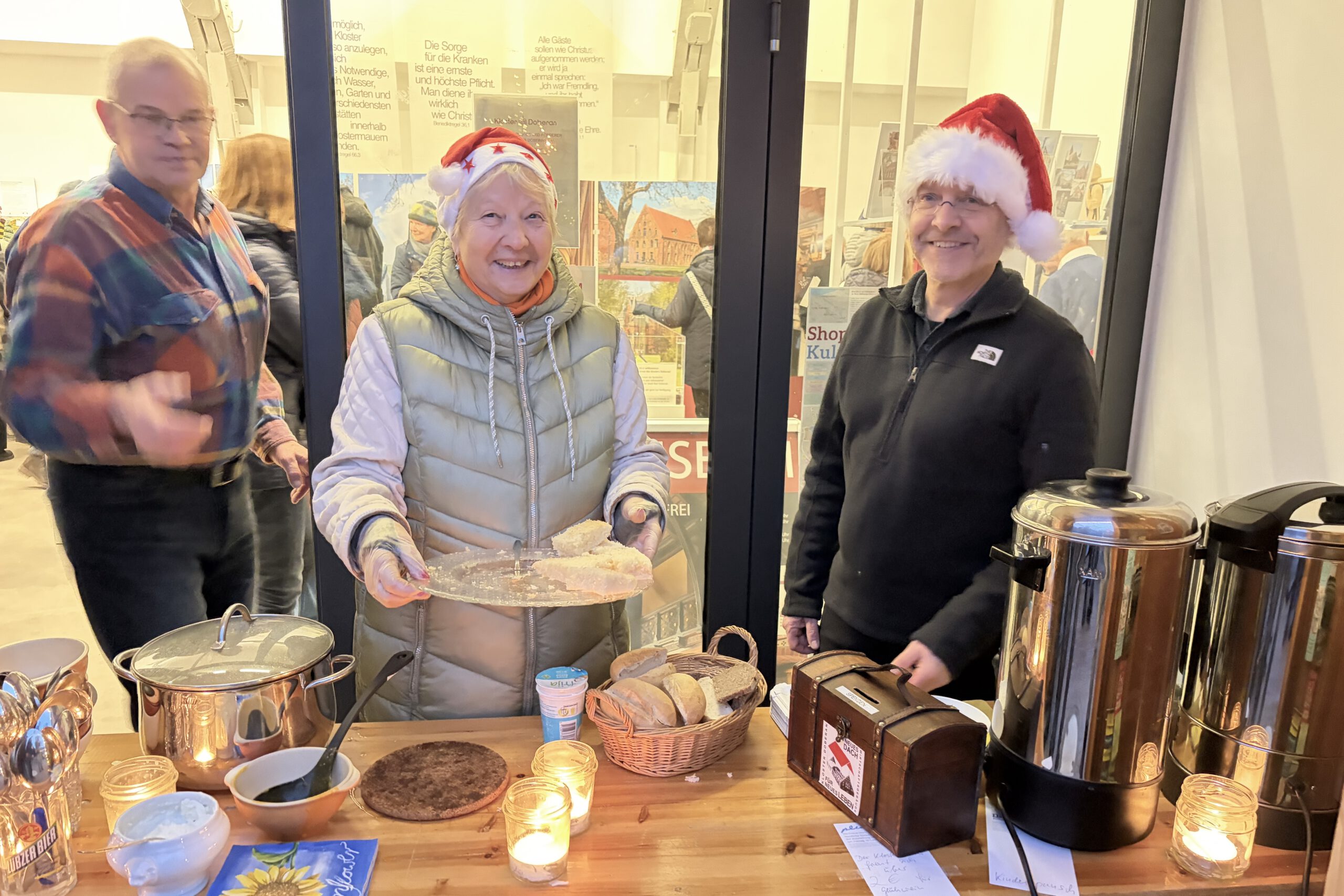 Über 40 Mitglieder und Freunde des Klostervereins kamen ab 18 Uhr ins Kornhaus. Und wie immer gab es ein buntes Mitbring-Büffet mit verschiedenen Salaten, Frikadellen, Schnittchen und selbstgebackenem Kuchen, das von Sabine Krahn-Schulze, der Vereinsvorsitzenden, nach einer kurzen Ansprache freigegeben wurde. Sie würdigte das Engagement der inzwischen fast 200 Vereinsmitglieder. Höhepunkt der letzten Monate war natürlich der Klostermarkt im Juni, der auch in diesem Jahr wieder ein voller Erfolg war und mit seinen Einnahmen einen wichtigen Beitrag leisten konnte, das Projekt „Neues Leben unter neuem Dach“ weiter voranzubringen.